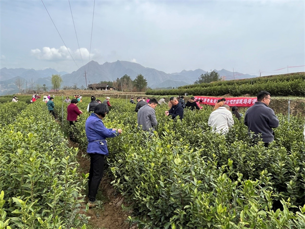 山間云霧繞,茶園綠意濃。在采摘場(chǎng)內(nèi),千畝茶園新芽吐露,一排排整齊的茶樹(shù)如同“綠毯”鋪滿了漫山遍野,縣茶技站專(zhuān)家對(duì)采摘技術(shù)進(jìn)行了現(xiàn)場(chǎng)培訓(xùn),采茶工人熟練地采摘著新茶,豐收的喜悅洋溢在她們的臉上,時(shí)時(shí)回蕩著不一樣的“茶語(yǔ)花香”。
