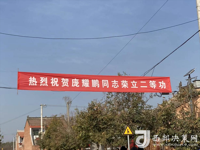 在喜慶的鑼鼓聲中,在現(xiàn)場(chǎng)父老鄉(xiāng)親的見(jiàn)證下,報(bào)喜團(tuán)成員抬著熠熠生輝的“二等功臣之家”的牌匾,懸掛起“熱烈祝賀龐耀鵬同志榮立二等功”的橫幅,來(lái)到龐耀鵬家門(mén)口,為龐耀鵬母親、岳父、岳母佩戴綬帶,頒發(fā)喜報(bào),送上牌匾和獎(jiǎng)勵(lì)金。座談交流中,報(bào)喜團(tuán)詳細(xì)了解了龐耀鵬家屬的身體和生活狀況,感謝他們?yōu)樽鎳?guó)培養(yǎng)了優(yōu)秀的軍事人才,鼓勵(lì)他們一如既往支持龐耀鵬安心部隊(duì)服役,建功軍營(yíng),爭(zhēng)取再立新功,為家鄉(xiāng)和國(guó)防事業(yè)增光添彩。