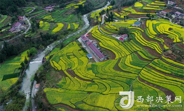 西部決策網(wǎng)訊  云巔巴山秀,棧道花海美。三月下旬,位于秦巴腹地的漢中市寧強縣巴山鎮(zhèn)石羊棧的梯田油菜花進入盛花期。放眼望去,金色的油菜花田層層疊疊,與連綿的青山、清澈的溪水、蜿蜒的公路、漂亮的民居等交相輝映,構(gòu)成一幅醉人的鄉(xiāng)村春日畫卷。(供稿:吳天文 劉炳林 鄭小兵)