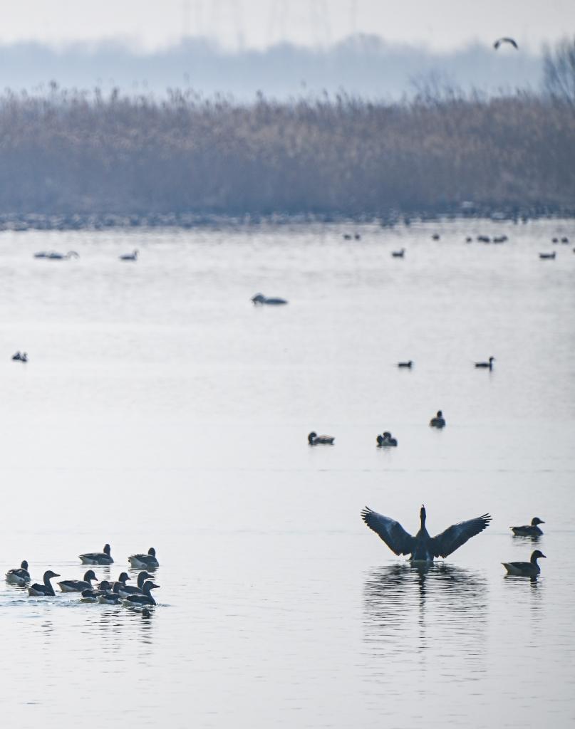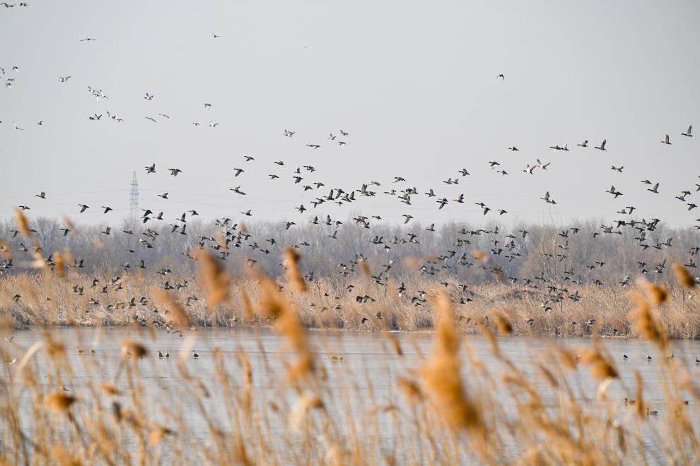 這是2025年2月26日在天津七里海濕地自然保護區(qū)拍攝的候鳥。新華社記者 孫凡越 攝